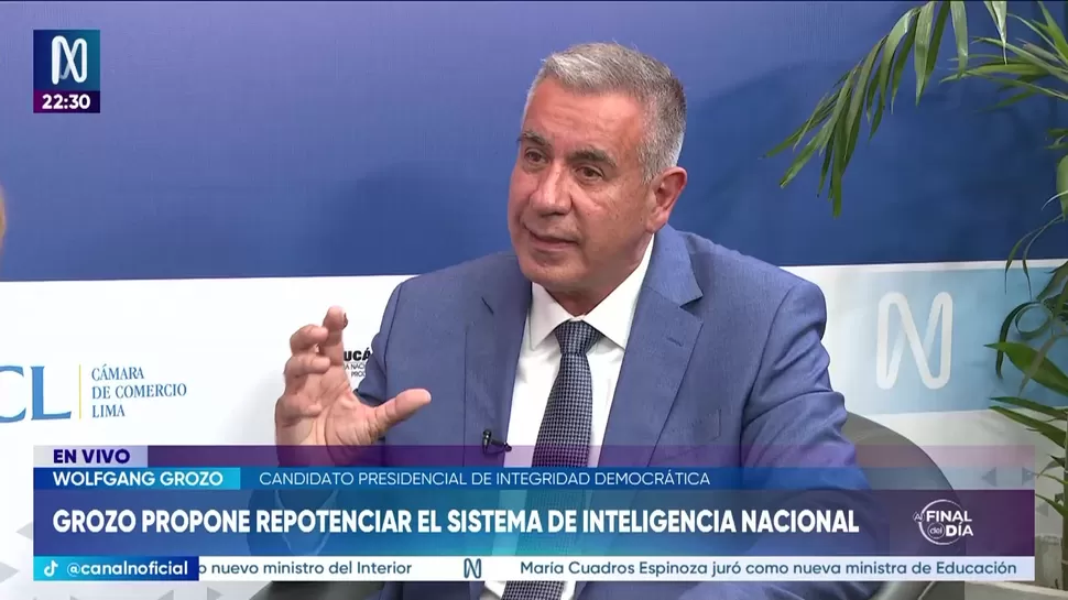 Al Final del DíaWolfgang Grozo: Me propusieron a mí ser ministro (de Defensa) y yo lo rechacéWolfgang GrozoAl Final del Día, de lunes a viernes a partir de las 10:00 p.m. por Canal N TagsAl Final del DíaRelacionadasKeiko Fujimori: Convocaremos a las Fuerzas Armadas para hacer rastrillaje en las zonas peligrosasJosé Carlos Requena: No sabemos qué vaya a pasar con ArroyoJosé Manuel Villalobos: El que no pasa la valla pierde la inscripción en enero del 2027Javier Gonzalez-Olaechea: El escudo fronterizo fue parte de la promesa de campaña de José Antonio KastMaría Cecilia Villegas: Una disposición del Presupuesto 2026 permitió que EsSalud salga del ámbito de FonafeCésar Astudillo: Planteo reformas policiales y judiciales, así como fortalecer la inteligencia