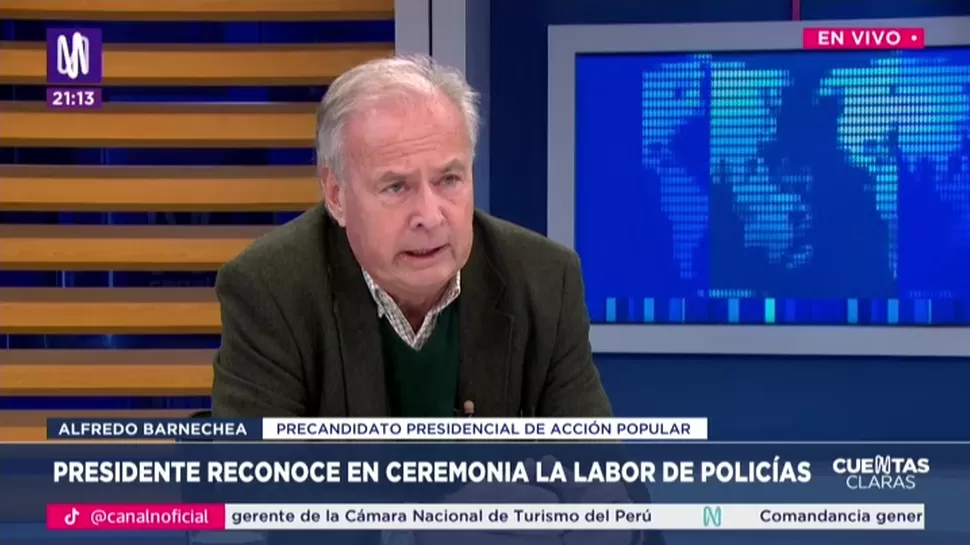 Cuentas ClarasAlfredo Barnechea: El Perú no es una nación fallidaCuentas Claras / Canal NCuentas Claras, de lunes a viernes a partir de las 09:00 p.m. por Canal N TagsCuentas ClarasRelacionadasPNP: Policía disparó contra joven que murió en protestaIván Slocovich: Es un gesto positivo ver a un jefe de Estado respaldando a la PolicíaCarlos Morán: La Policía ha tenido paciencia, contención y estrategia para controlar la manifestación¿Cuáles fueron los acuerdos entre Jerí y alcaldes?Ernesto Álvarez es el nuevo jefe de GabineteFabiola Morales: López Aliaga ha cumplido con los votantes