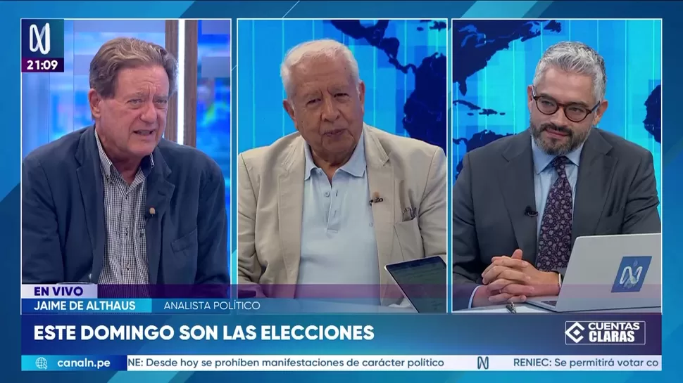 Cuentas ClarasAnálisis del contexto a días de las elecciones generalesCuentas Claras / Canal NCuentas Claras, de lunes a viernes a partir de las 09:00 p.m. por Canal N TagsCuentas ClarasRelacionadasAlonso Segura: En los últimos 10 años hubo 18 ministros de EconomíaJulio Rodríguez: Fiscal de la Nación puede investigar preliminarmente al expresidente José JeríCarlos Adrianzén: La bicameralidad podría resultar una buena idea para la gobernabilidadAníbal Quiroga: Es absurda una eventual reforma del sistema de justicia en de José Domingo PérezEnrique Castillo: El concepto de derechas o izquierdas sea relativizadoElmer Cuba: Ahora, las crisis políticas se resuelven con la caída de un presidente