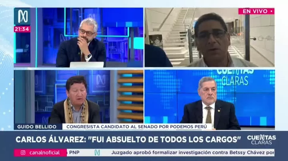 Cuentas ClarasCarlos Álvarez asegura que fue absueltoCuentas Claras / Canal NCuentas Claras, de lunes a viernes a partir de las 09:00 p.m. por Canal N TagsCuentas ClarasRelacionadasMarie Ayasta: Valer está enojado porque no es parte del círculo de JeríDavid Hernández: Consultas de empresas chinas sí ha habidoAndrés Gómez de la Torre: La cooperación de EE.UU. se dará con un mecanismo¿Leyes pro crimen aprobadas por el Congreso?Óscar Pérez: Fue un gesto político significativo la reunión de Donald Trump y María Corina Machado en EE.UU.Anthony Laub: Sigrid Bazán sale a hablar tonterías sobre Petroperú