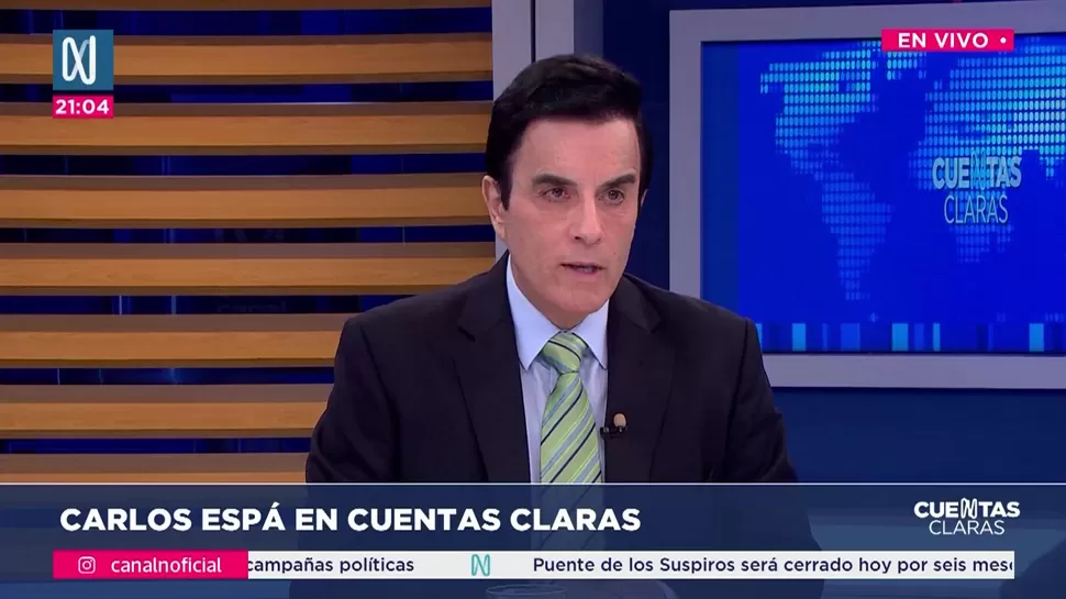Cuentas ClarasCarlos Espá: El presidente es el rehén del CongresoCuentas Claras / Canal NCuentas Claras, de lunes a viernes a partir de las 09:00 p.m. por Canal N TagsCuentas ClarasRelacionadasGobierno amenazó con denunciar a la prensa pero luego se retractaBenji Espinoza: La modificación al reglamento de colaboración eficaz fija plazos clarosWilfredo Pedraza: SUNIR será exactamente lo mismoCiro Castillo: Insistiré para ingresar al Gobierno Regional del CallaoOliver Stark: Respaldó la propuesta de Chiabra de permitir ingreso de capital hasta 49% en PetroperúÓrdenes de servicio para visitantes nocturnas de Palacio de Gobierno