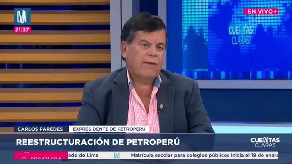 Cuentas ClarasCarlos Paredes: El patrimonio de Petroperú es negativoCuentas Claras / Canal NCuentas Claras, de lunes a viernes a partir de las 09:00 p.m. por Canal N TagsCuentas ClarasRelacionadasLuis Galarreta: Kast fue muy cuidadoso en sus expresiones sobre PerúArmando Barrantes: Sospechamos que la tacha esté vinculada a la minería ilegalAlejandro Muñante: De comprobarse agresión, Alcarraz deber recibir una sanción ejemplarFiscal Tomás Gálvez desactiva equipos especialesMario Vizcarra: Ya hemos denunciado a la presidenta del TCLuis Villasana: Vemos una especie de poder dentro de los Rodríguez