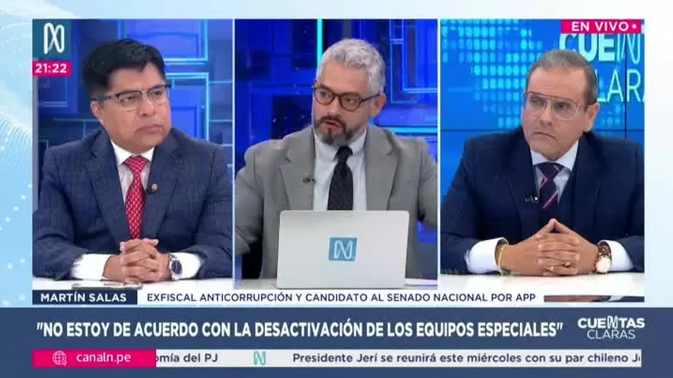 Cuentas ClarasFiscal Tomás Gálvez desactiva equipos especialesCuentas Claras / Canal NCuentas Claras, de lunes a viernes a partir de las 09:00 p.m. por Canal N TagsCuentas ClarasRelacionadasMario Vizcarra: Ya hemos denunciado a la presidenta del TCLuis Villasana: Vemos una especie de poder dentro de los RodríguezLuis Nunes sobre Maduro: No entendió que su final estaba cercaLuis Roel sobre Luis Aragón: "Va a tener un gran problema en el sistema electoral" Augusto Álvarez Rodrich: Campañas para elecciones 2026 serán complicadas y sumadas a una violencia muy grandeLuis Miguel Castilla sobre nombramiento de nueva presidenta de Petroperú: Respondería a manejos opacos o no dar información