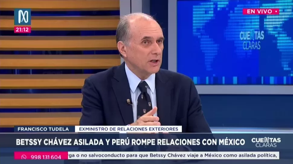 Cuentas ClarasFrancisco Tudela: "López Obrador defendió el golpe de Estado"Cuentas Claras / Canal NCuentas Claras, de lunes a viernes a partir de las 09:00 p.m. por Canal N TagsCuentas ClarasRelacionadasEduardo Ferrero: "Las relaciones consulares se mantienen"Carlos Mesía: "Nadie sabía el paradero de Betssy Chávez"Patricia Juárez sobre Betssy Chávez: "Estaba cantada la situación, estaba tramado"Juan José Santiváñez: "Si Dina Boluarte seguía, el Frontón sería una realidad"Óscar Zapata: Creo que José Jerí lo está haciendo bienOmar Quezada: El gobierno de Alan García es imbatible