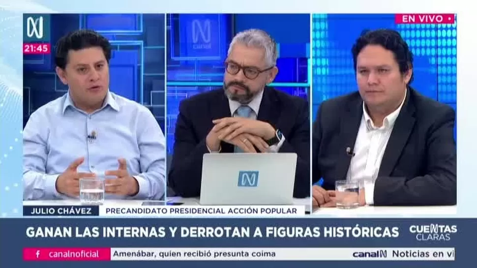 Cuentas ClarasGanan las internas y derrotan a figuras históricasCuentas Claras / Canal NCuentas Claras, de lunes a viernes a partir de las 09:00 p.m. por Canal N TagsCuentas ClarasRelacionadasCésar Nakazaki: Pedro Castillo puede postularAlberto Jordán: Los disparos contra Rafael Belaunde no son de cualquier personaNorma Yarrow: Será una de las campañas más violentasLesly Shica: Dina Boluarte me vetóJosé Elice: Rospigliosi debió pedir que se elimine la semana de representaciónCarlos Adrianzén: Se infla el gasto moderadamente