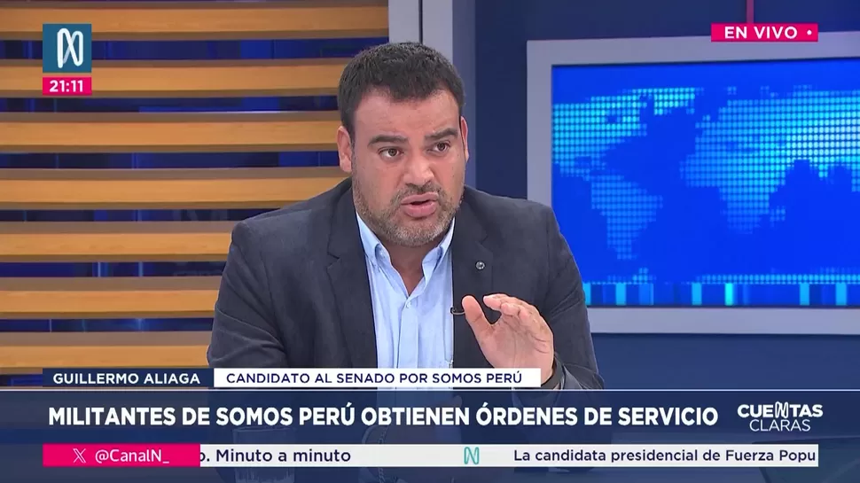 Cuentas ClarasGuillermo Aliaga: No se puede hablar de copamiento de Somos PerúCuentas Claras / Canal NCuentas Claras, de lunes a viernes a partir de las 09:00 p.m. por Canal N TagsCuentas ClarasRelacionadasErnesto Bustamante: Hay que cuidar cómo se gasta la plataPaola Lazarte: Es posible que PMO Vías vaya a un arbitraje internacional Fiorella Molinelli: La cancha debe estar pareja para todosLuis Vivanco: Acuña está a favor de la vacanciaVladimir Meza: El video de Carlos Álvarez nos puso en alertaFuad Khoury: Diferencias entre Provías y PMO Vías afectarán ejecución de Vía Expresa Santa Rosa y nueva Carretera Central