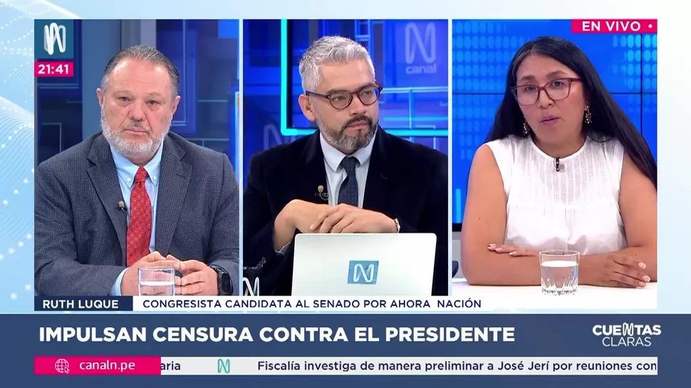 Cuentas ClarasImpulsan censura contra el presidente José JeríCuentas Claras / Canal NCuentas Claras, de lunes a viernes a partir de las 09:00 p.m. por Canal N TagsCuentas ClarasRelacionadasDaniel Salaverry: Parece que el presidente Jerí es amigo de las mentirasLuis Lamas Puccio: No cualquiera toca la puerta del presidenteMarie Ayasta: Valer está enojado porque no es parte del círculo de JeríDavid Hernández: Consultas de empresas chinas sí ha habidoAndrés Gómez de la Torre: La cooperación de EE.UU. se dará con un mecanismo¿Leyes pro crimen aprobadas por el Congreso?