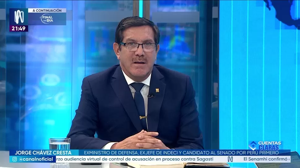 Cuentas ClarasJorge Chávez Cresta: Prima el interés de permanecer en el poderCuentas Claras / Canal NCuentas Claras, de lunes a viernes a partir de las 09:00 p.m. por Canal N TagsCuentas ClarasRelacionadasHernando de Soto cuestiona al nuevo gabineteUrpi Torrado: Casi el 40% de peruanos no tiene posición políticaLourdes Alcorta: No me gusta De Soto como jefe de GabineteWolfgang Grozo: Estamos creciendo orgánicamenteJorge Zapata: Hay algunas bancadas mas sólidas a la derechaJosé Baella: Renovación Popular no puede tranzar con irresponsables