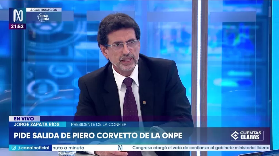 Cuentas ClarasJorge Zapata Ríos: Hubo torpeza y mala gestión desde la ONPECuentas Claras / Canal NCuentas Claras, de lunes a viernes a partir de las 09:00 p.m. por Canal N TagsCuentas ClarasRelacionadasEl rol que cumplió la ONPE en las recientes eleccionesCristian Castillo: Galaga no tiene ninguna sanciónJosé Manuel Villalobos: Las actas observadas son un poco más de 5 milCarlos Caro sobre Piero Corvetto: "Puede pedir licencia y hay muchas alternativas para que no se aferre al cargo"Josué Gutiérrez: "Está claro que falló la ONPE"Javier Gonzáles- Olaechea: "Estos hechos no son menores"