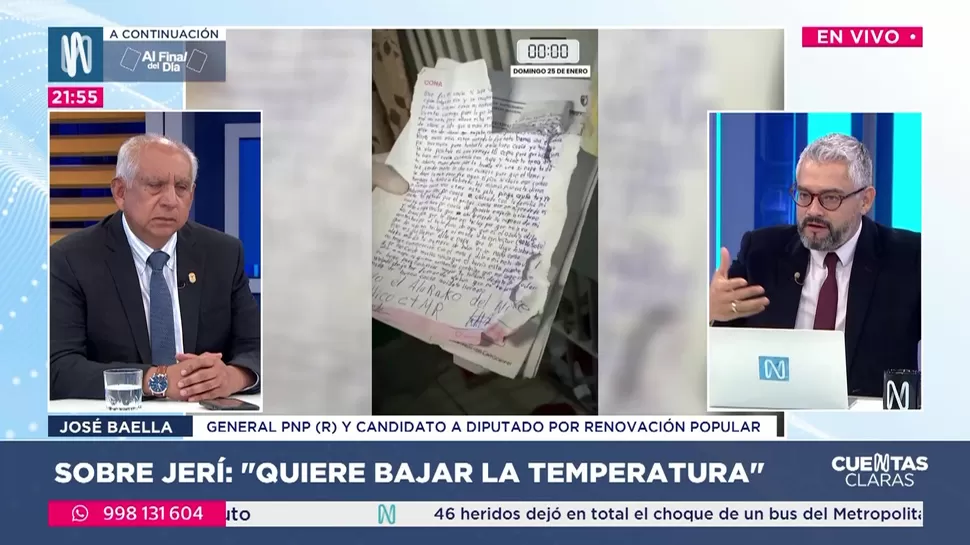 Cuentas ClarasJosé Baella: Los penales en el país son una bomba de tiempoCuentas Claras / Canal NCuentas Claras, de lunes a viernes a partir de las 09:00 p.m. por Canal N TagsCuentas ClarasRelacionadasPatricia Juárez: No podemos estar sorteando la presidenciaUrpi Torrado: Cuando te haces más conocido, ganas o pierdes votosIsmael Benavides: Los partidos políticos son muy irresponsablesGraciela Villasís: Preocupa que el presidente Jerí reciba a empresarios que incumplieron con el EstadoJames Rodríguez: En Uruguay se sanciona hasta con 25 años de cárcel los casos de violación sexualChristian Llamocuri: Denuncia contra los futbolista Zambrano, Peña y Trauco aún no ha sido formalizada en Uruguay