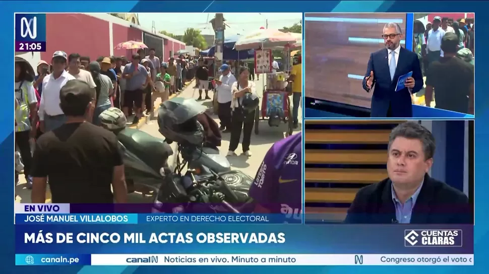Cuentas ClarasJosé Manuel Villalobos: Las actas observadas son un poco más de 5 milCuentas Claras / Canal NCuentas Claras, de lunes a viernes a partir de las 09:00 p.m. por Canal N TagsCuentas ClarasRelacionadasEl rol que cumplió la ONPE en las recientes eleccionesCristian Castillo: Galaga no tiene ninguna sanciónCarlos Caro sobre Piero Corvetto: "Puede pedir licencia y hay muchas alternativas para que no se aferre al cargo"Josué Gutiérrez: "Está claro que falló la ONPE"Javier Gonzáles- Olaechea: "Estos hechos no son menores"Guzmán Vera Coronel: Contrato entre la ONPE y la empresa Galaga tiene serias deficiencias