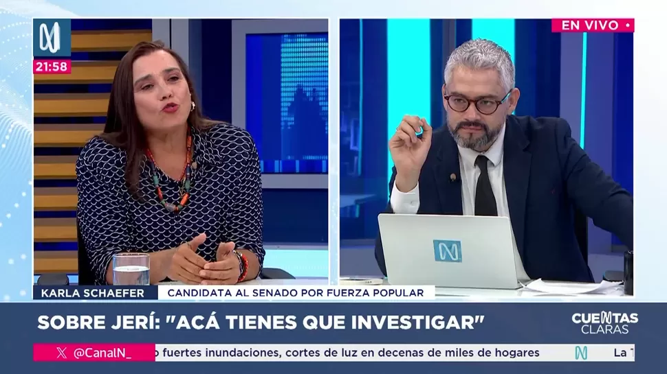 Cuentas ClarasKarla Schaefer: José Jerí ha mellado la imagen presidencialCuentas Claras / Canal NCuentas Claras, de lunes a viernes a partir de las 09:00 p.m. por Canal N TagsCuentas ClarasRelacionadasEnrique Valderrama: César Acuña gobernó con Dina BoluarteLuis Valdez: Ni estamos encubriendo, ni protegiendo a José JeríJosé Baella: Los penales en el país son una bomba de tiempoPatricia Juárez: No podemos estar sorteando la presidenciaUrpi Torrado: Cuando te haces más conocido, ganas o pierdes votosIsmael Benavides: Los partidos políticos son muy irresponsables