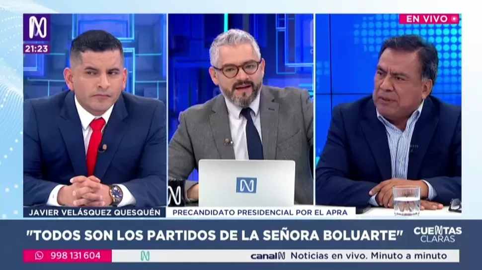 Cuentas ClarasLópez Aliaga y Acuña se lanzan a la presidenciaCuentas Claras / Canal NCuentas Claras, de lunes a viernes a partir de las 09:00 p.m. por Canal N TagsCuentas ClarasRelacionadasFabiola Morales: López Aliaga ha cumplido con los votantesAldo Carlos Mariños: Cumplo mi palabra con mi marcha de sacrificioJorge Zapata: Esperamos un gobierno coherenteJuan de la Puente: Hay un nuevo oficialismoJosé Jerí asume la presidencia tras vacancia de BoluarteEl proceso de vacancia de Dina Boluarte