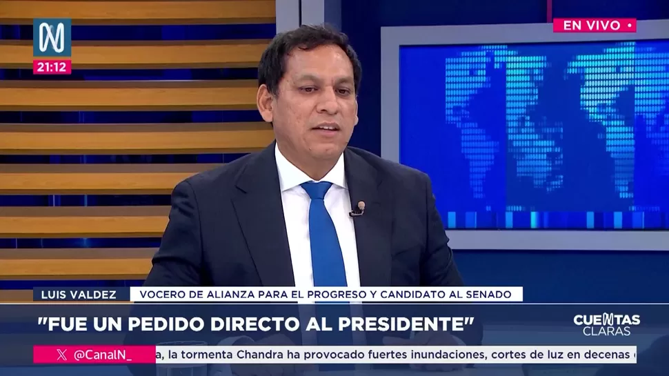 Cuentas ClarasLuis Valdez: Ni estamos encubriendo, ni protegiendo a José JeríCuentas Claras / Canal NCuentas Claras, de lunes a viernes a partir de las 09:00 p.m. por Canal N TagsCuentas ClarasRelacionadasNora Loredo: Se tiene que hacer una reorganización total del CongresoErick García: Prórrogas en proyectos hidroeléctricos son posibles si hay sustento por fuerza mayorJosé Williams: El presidente José Jerí no da para másIván Arenas: La Policía sabe que hay mafia de empresario chinos en CajamarcaJuan Paredes Castro: Jerí parecía la persona ideal para la transiciónErnesto Bustamante: Hay claramente una presión política por desestabilizar el país en época preelectoral
