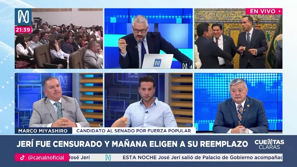 Cuentas ClarasMarco Miyashiro: Me siento apenado porque Jerí convocó a los GEINCuentas Claras / Canal NCuentas Claras, de lunes a viernes a partir de las 09:00 p.m. por Canal N TagsCuentas ClarasRelacionadasLuis Vivanco: No se promoverá la candidatura de Acuña Aníbal Quiroga: Lo correcto sería la vacanciaColumbus: Defender la estabilidad del país no es un tema de interés ni de cálculosJosé Cueto sobre Jerí: Se olvidó que es el encargado de la presidenciaRoberto Chiabra: El mismo José Jerí debería renunciarPatricia Juárez: La ultraderecha y los caviares se unen