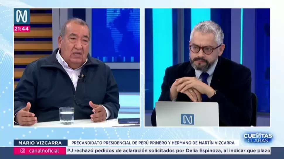 Cuentas ClarasMario Vizcarra: De ninguna manera habrá asilo, no se fugaráCuentas Claras / Canal NCuentas Claras, de lunes a viernes a partir de las 09:00 p.m. por Canal N TagsCuentas ClarasRelacionadasCarlos Adrianzén: Se infla el gasto moderadamenteEste domingo serán las elecciones internas de partidosWilfredo Pedraza: La frontera más controlada es con ChileÓscar Urviola: Sí fue una rebeliónAlejandro Aguinaga: Los fiscales del equipo especial Lava Jato beneficiaron a OdebrechtAmérico Gonza: Hubo sí una conspiración para derrocar el gobierno