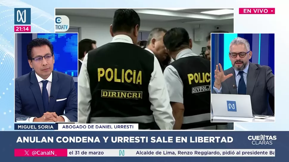 Cuentas ClarasMiguel Soria: Daniel Urrestri podría salir en libertad el martes o miércoles Cuentas Claras / Canal NCuentas Claras, de lunes a viernes a partir de las 09:00 p.m. por Canal N TagsCuentas ClarasRelacionadasJulio Chávez: El actual presidente deja muchas dudasCecilia Chacón: López Aliaga es el gran culpableKelly Portalatino: Formulé al presidente la permanencia de ArriolaMartín Salas: La mediocridad y la delincuencia ronda en el ParlamentoLuis Galarreta: Es innecesario todo este riesgo que puede pasarÓscar Urviola: No se debió haber usado la censura