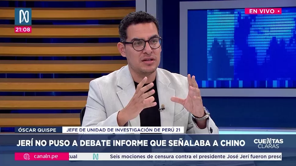 Cuentas ClarasÓscar Quispe: El presidente Jerí no recuerda lo que hizoCuentas Claras / Canal NCuentas Claras, de lunes a viernes a partir de las 09:00 p.m. por Canal N TagsCuentas ClarasRelacionadasKarla Schaefer: José Jerí ha mellado la imagen presidencialEnrique Valderrama: César Acuña gobernó con Dina BoluarteLuis Valdez: Ni estamos encubriendo, ni protegiendo a José JeríJosé Baella: Los penales en el país son una bomba de tiempoPatricia Juárez: No podemos estar sorteando la presidenciaUrpi Torrado: Cuando te haces más conocido, ganas o pierdes votos