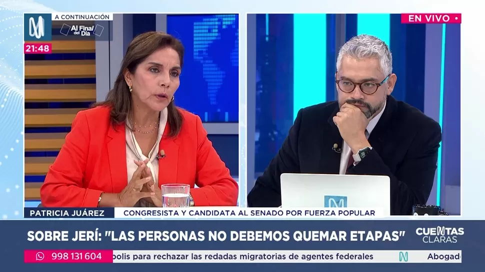 Cuentas ClarasPatricia Juárez: No podemos estar sorteando la presidenciaCuentas Claras / Canal NCuentas Claras, de lunes a viernes a partir de las 09:00 p.m. por Canal N TagsCuentas ClarasRelacionadasUrpi Torrado: Cuando te haces más conocido, ganas o pierdes votosIsmael Benavides: Los partidos políticos son muy irresponsablesGraciela Villasís: Preocupa que el presidente Jerí reciba a empresarios que incumplieron con el EstadoJames Rodríguez: En Uruguay se sanciona hasta con 25 años de cárcel los casos de violación sexualChristian Llamocuri: Denuncia contra los futbolista Zambrano, Peña y Trauco aún no ha sido formalizada en UruguayJosé Elice: Yo me inclino por la vacancia de José Jerí