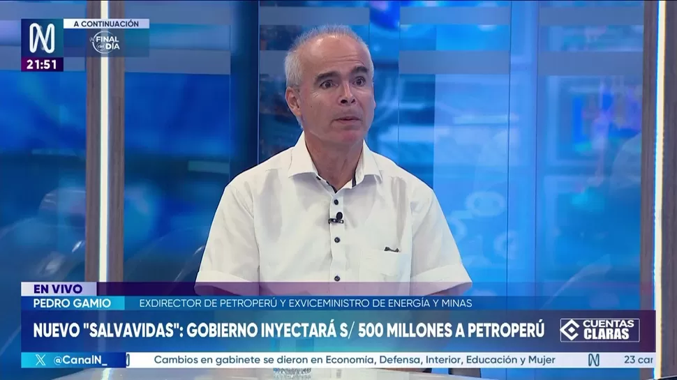 Cuentas ClarasPedro Gamio: Petroperú ha perdido mercado y depende del apoyo estatalCuentas Claras / Canal NCuentas Claras, de lunes a viernes a partir de las 09:00 p.m. por Canal N TagsCuentas ClarasRelacionadasWalter Gutiérrez: Salida de Miralles evidencia disputas por ministeriosMiralles deja la PCM a un día del voto de confianzaAlejandro Daly: El Perú no está creciendo al ritmo que le permita captar a los 300 mil jóvenesJeffrey Radzinsky: La población carece de un ánimo electoral para los comicios 2026Ramiro Escobar: Construcción de muros y zanjas en la frontera norte de Chile podría provocar una nueva crisis migratoriaElio Riera: Nadie pueden demostrar que Alianza Para el Progreso haya copado algún ministerio