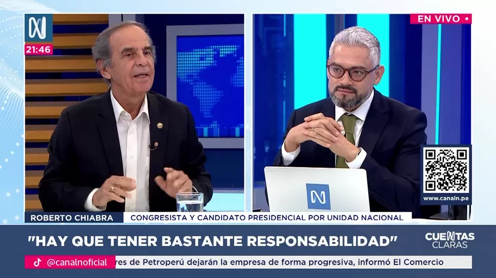 Cuentas ClarasRoberto Chiabra: El mismo José Jerí debería renunciarCuentas Claras / Canal NCuentas Claras, de lunes a viernes a partir de las 09:00 p.m. por Canal N TagsCuentas ClarasRelacionadasPatricia Juárez: La ultraderecha y los caviares se unenHugo de Zela: Tenemos que comer hamburguesa, chifa y un buen postreTeresa Mera Gómez: El Congreso ejerce su control políticoFrancis Allison: Se ha vuelto un país donde manda el ParlamentoAlejandro Muñante: El presidente del Congreso ha sacado cuerpoLuis Miguel Castilla: China es el quinto inversionista más importante del Perú