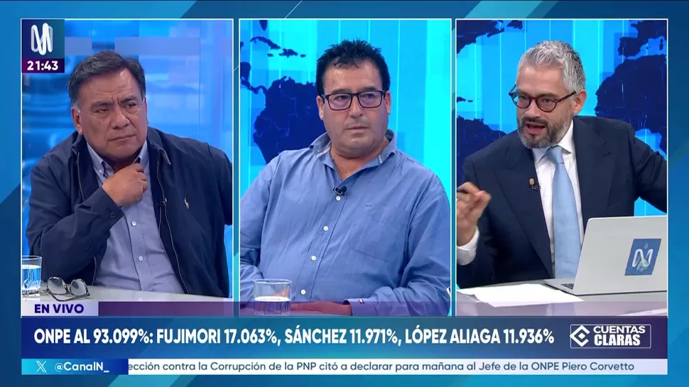 Cuentas ClarasEl rol que cumplió la ONPE en las recientes eleccionesCuentas Claras / Canal NCuentas Claras, de lunes a viernes a partir de las 09:00 p.m. por Canal N TagsCuentas ClarasRelacionadasCristian Castillo: Galaga no tiene ninguna sanciónJosé Manuel Villalobos: Las actas observadas son un poco más de 5 milCarlos Caro sobre Piero Corvetto: "Puede pedir licencia y hay muchas alternativas para que no se aferre al cargo"Josué Gutiérrez: "Está claro que falló la ONPE"Javier Gonzáles- Olaechea: "Estos hechos no son menores"Guzmán Vera Coronel: Contrato entre la ONPE y la empresa Galaga tiene serias deficiencias