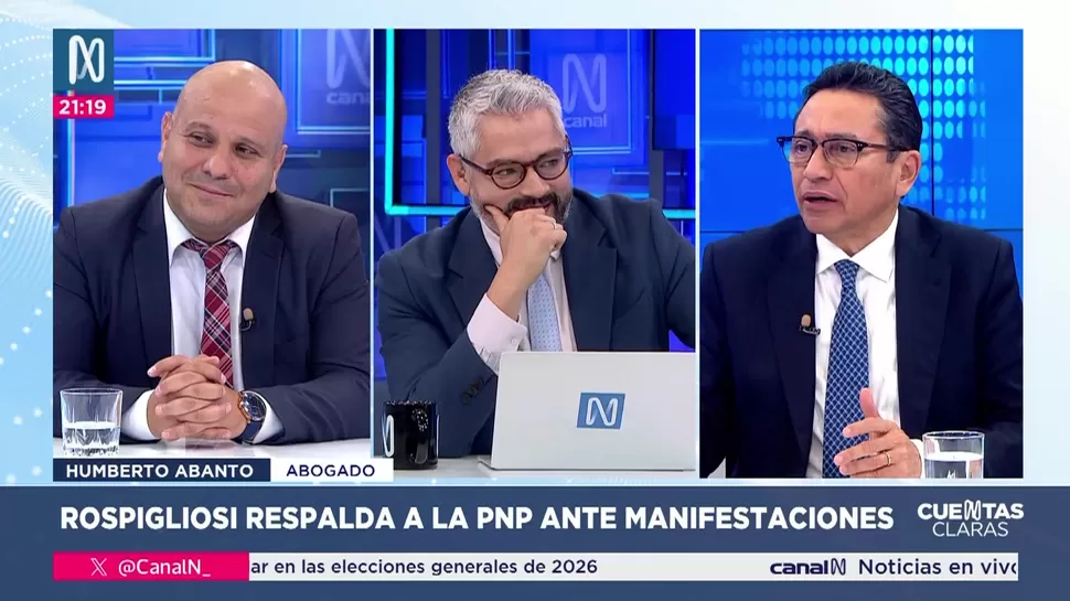 Cuentas ClarasRospigliosi respalda a la PNP ante manifestacionesCuentas Claras / Canal NCuentas Claras, de lunes a viernes a partir de las 09:00 p.m. por Canal N TagsCuentas ClarasRelacionadasRennán Espinoza: Se requiere una preparación antes de otorgar pistolas eléctricas a serenosJuan Sheput: Pedro Castillo tiene posibilidades ante una eventual postulación en 2026Jaime de Althaus: Hay muchos castillistas que quieren ir con VizcarraJosé Manuel Villalobos: Ni Vizcarra ni Quero cumplen con los requisitosIván Slocovich: Es positivo tener un presidente que dé la cara Walter Gutiérrez: Le escribí una carta al presidente