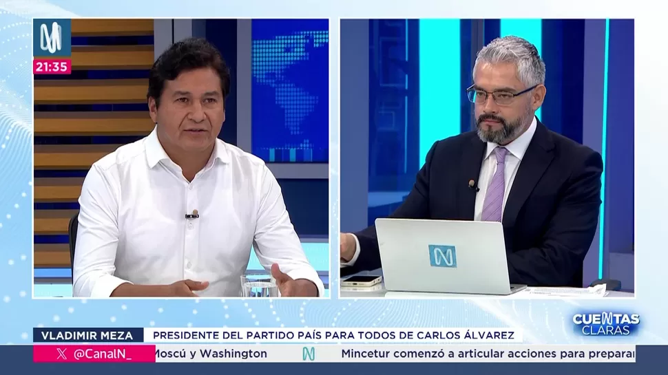 Cuentas ClarasVladimir Meza: El video de Carlos Álvarez nos puso en alertaCuentas Claras / Canal NCuentas Claras, de lunes a viernes a partir de las 09:00 p.m. por Canal N TagsCuentas ClarasRelacionadasFuad Khoury: Diferencias entre Provías y PMO Vías afectarán ejecución de Vía Expresa Santa Rosa y nueva Carretera CentralRoxana Rocha: José Luna busca llamar la atención del que está primero en las encuestasEduardo Castillo: Probablemente José Jerí no llegue a 28 de julioJuan Sheput: Es el derecho de Carlos Álvarez a la indignaciónMarisol Pérez Tello: Miguel del Castillo aún no ha sido expulsado de Primero la GenteJosué Gutiérrez: Pedro Castillo no está bien preso