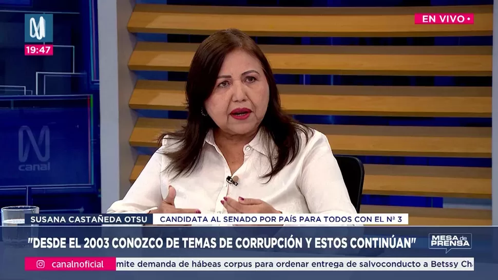 Susana Castañeda explicó que su ingreso a la política responde a su amplia experiencia en el sistema de justicia y a la persistencia de la corrupción en el país. Aclaró su vínculo con País para Todos a través de Julia Príncipe y defendió su voto singular en la absolución de Carlos Álvarez, rechazando cuestionamientos éticos. Abordó la polémica por la franja electoral, reafirmando su respaldo al candidato tras las aclaraciones internas. Finalmente, planteó una mirada crítica sobre leyes penales recientes y la necesidad de una reforma integral del sistema de justicia desde el Senado