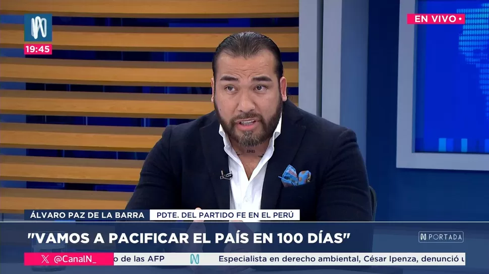N PortadaÁlvaro Paz de la Barra promete lograr la pacificación del país en 100 díasNPortada/Canal NN Portada, de lunes a viernes a partir de las 07:00 p.m. por Canal N TagsNPortadaRelacionadasWalter Gutiérrez: Todos sabían que Jerí era un presidente débilÁlvarez sobre Jerí: No se ha evidenciado delito algunoIzaguirre: Los venezolanos tenemos líderes ya electosGladys Echaíz: "Postulo con el número 6 al Senado por Renovación Popular"APRA presentó su plan se seguridad ciudadanaGinevra Baffigo sobre la aparición de "Un viaje a Perú" en el caso Epstein