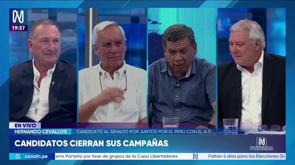 N PortadaCandidatos presidenciales cierran sus campañasN Portada / Canal NN Portada, de lunes a viernes a partir de las 07:00 p.m. por Canal N TagsN PortadaRelacionadasCarlos Caro sobre la condena a Fernando Rospigliosi: Hay una cuestión previa que debió haberse discutidoSebastián Ortiz: Belmont ha estado más cerca de Perú Libre y al antaurismoAndy Carrión: José Domingo Pérez está dando pasos que lo alejan de un eventual retorno a la FiscalíaFernán Altuve: El ánimo de los votantes un día dice una cosa y mañana otraLuis Miguel Castilla: El Congreso y Ejecutivo están dejando bombas de tiempo al próximo gobiernoBalance del debate presidencial