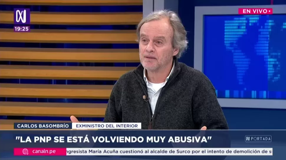 N PortadaCarlos Basombrío: La Policía se está volviendo muy abusivaN Portada / Canal NN Portada, de lunes a viernes a partir de las 07:00 p.m. por Canal N TagsN PortadaRelacionadasEnzo Elguera: Respaldo la reducción del plazo para difundir encuestas a 3 días antes de eleccionesRafael Belaunde: Tiene que ser más fácil para el Perú hacer inversionesJuan Abad: Tres congresistas renunciaron y dos fueron expulsados de Acción PopularJuan Rosales: El Congreso es visto como el sector o institución con más poderMiguel Palomino: Los conductores estamos asustados, no podemos trabajarSebastián Ortiz: El nuevo ministro de Justicia registra 14 investigaciones penales, 4 siguen vigentes