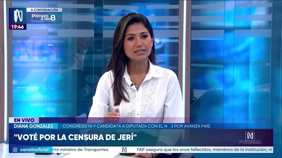 N PortadaDiana Gonzales: Creo que muy pocos votos de APP fueron para AlvaN Portada / Canal NN Portada, de lunes a viernes a partir de las 07:00 p.m. por Canal N TagsN PortadaRelacionadasEnrique Ghersi: Creo que este Congreso no le dará el voto de confianza a Hernando de SotoManuel Monteagudo: La Corte considera que los delitos de lesa humanidad no prescribenJuan de la Puente: Creo que el ganador es López AliagaLuz Pacheco sobre Urrestri: Sí hubo vulneración del debido procesoPaul García: Avanza País votó por Maricarmen Alva Carlos Caro: El indulto común no podía prosperar