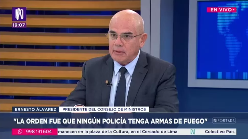 N PortadaErnesto Álvarez: Creo que Magallanes intentó cumplir su deberN Portada / Canal NN Portada, de lunes a viernes a partir de las 07:00 p.m. por Canal N TagsN PortadaRelacionadasJuan Aurelio Arévalo Miró Quesada: El 2024 se registraron más de 290 agresiones contra periodistasJulio Rodríguez: La JNJ sí ha cumplido la medida cautelar que ordena reponer a Delia EspinozaPhillip Butters: Me ubico en el centro derechoDavid Tuesta: Ley que eleva pensiones para docentes será primera prueba de fuego para el presidente JeríJavier González-Olaechea: A los 38 años, pocos pueden tener experiencia para ser jefes de EstadoJulio Chávez: Acción Popular nunca sostuvo el gobierno de Dina Boluarte
