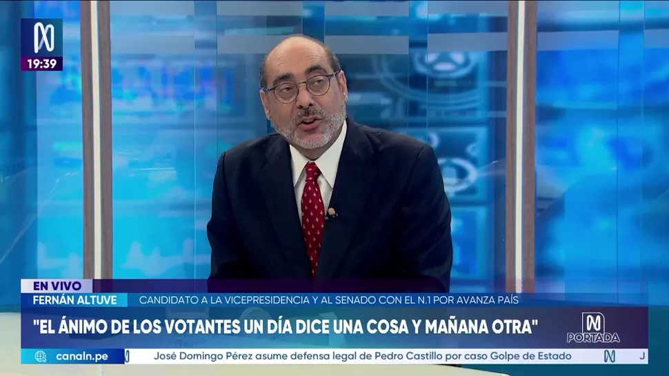 N PortadaFernán Altuve: El ánimo de los votantes un día dice una cosa y mañana otraN Portada / Canal NN Portada, de lunes a viernes a partir de las 07:00 p.m. por Canal N TagsN PortadaRelacionadasAndy Carrión: José Domingo Pérez está dando pasos que lo alejan de un eventual retorno a la FiscalíaLuis Miguel Castilla: El Congreso y Ejecutivo están dejando bombas de tiempo al próximo gobiernoBalance del debate presidencialPetroperú: Proinversión presenta plan de promoción de la inversión privadaBalace de las primeras fechas del debate presidencialJorge Zapata: Si no se reforma Petroperú, vamos a seguir con el mismo problema