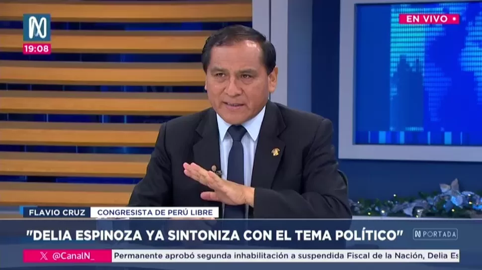 N PortadaFlavio Cruz: Delia Espinoza ya sintoniza con el tema políticoN Portada / Canal NN Portada, de lunes a viernes a partir de las 07:00 p.m. por Canal N TagsN PortadaRelacionadasCarlos Gallardo: El acuerdo fiscal del MEF necesita más acciones que anunciosCarlos Caro: Una sentencia del TC no puede ser inaplicadaHernán Chaparro: La vez anterior Rafael López Aliaga tampoco firmó el Pacto ÉticoTito Alegría: Cancelación de rutas es consecuencia directa del cobro de la TUUAMario Candia: Apostar solo por viaductos es antitécnico y responde más a una lógica políticaMariano González: Antauro Humala ha conversado con Salvemos al Perú para ir al Senado