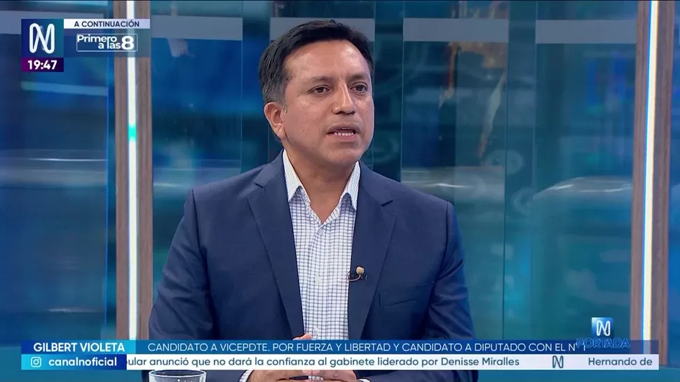 N PortadaGilbert Violeta: Esperemos que Miralles cumpla un buen papelN Portada / Canal NN Portada, de lunes a viernes a partir de las 07:00 p.m. por Canal N TagsN PortadaRelacionadasJorge Zapata: José Balcázar nos causó mucha inquietud al comienzoAbraham Levy: El calentamiento del mar en el norte es muy importante Francisco Tudela: La continuidad de Hugo de Zela me parece enormemente positivaLuis Solari: El presidente José Balcázar habría sacrificado a De Soto por otrosDiana Gonzales: Creo que muy pocos votos de APP fueron para AlvaEnrique Ghersi: Creo que este Congreso no le dará el voto de confianza a Hernando de Soto