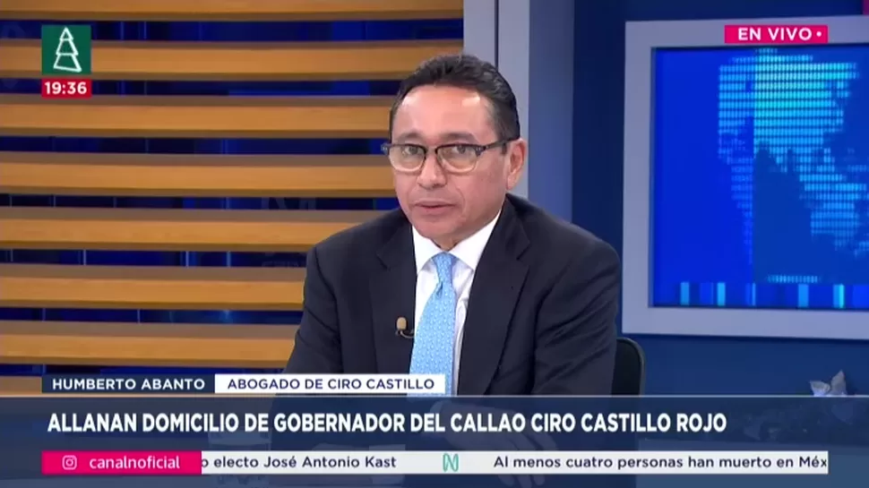 N PortadaHumberto Abanto: Tengo comunicación con Ciro Castillo pero no sé dónde estáN Portada / Canal NN Portada, de lunes a viernes a partir de las 07:00 p.m. por Canal N TagsN PortadaRelacionadasAlfredo Barnechea: Quiero pedir disculpas a los miembros del JNEJorge González Izquierdo: El precio del dólar ha bajado 10%, muy fuerteAfredo Azurín: A la Policía se le ha quitado la autoridadCarlo Magno Salcedo: Víctor Polay es un terroristaJuan Sheput: El trabajo en seguridad ciudadana es un fracasoEdmundo del Águila: La ruta de Julio Chávez está equivocada