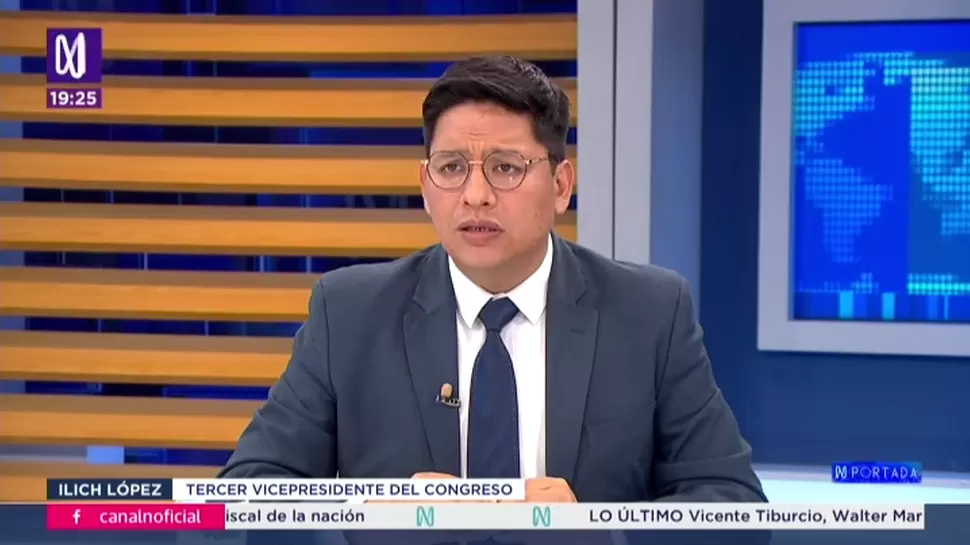 N PortadaIlich López: No nos pidieron que participemos en el GabineteN Portada / Canal NN Portada, de lunes a viernes a partir de las 07:00 p.m. por Canal N TagsN PortadaRelacionadasDanilo Guevara: Tengo excelentes referencias sobre la capacidad profesional de TiburcioJoseph Campos: Le he sugerido a Dina Boluarte que ponga un amparoJosé Carlos Requena: El mayor riesgo es terminar como MerinoLuis Valdez: APP siempre apoyará la gobernabilidadEnrique Ghersi: La mayoría en el TC se ha pronunciado a favor de Keiko FujimoriMarisol Pérez Tello: Yo no integraría el gabinete de José Jerí