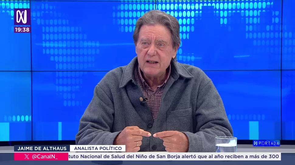 N PortadaJaime de Althaus: Me sorprendió la sentencia de BermejoN Portada / Canal NN Portada, de lunes a viernes a partir de las 07:00 p.m. por Canal N TagsN PortadaRelacionadasVladimir Padilla: El caso de Bermejo está con el antiguo código procesal Jorge Montoya: Nunca estuve de acuerdo con la vacanciaErnesto Álvarez: Creo que Magallanes intentó cumplir su deberJuan Aurelio Arévalo Miró Quesada: El 2024 se registraron más de 290 agresiones contra periodistasJulio Rodríguez: La JNJ sí ha cumplido la medida cautelar que ordena reponer a Delia EspinozaPhillip Butters: Me ubico en el centro derecho