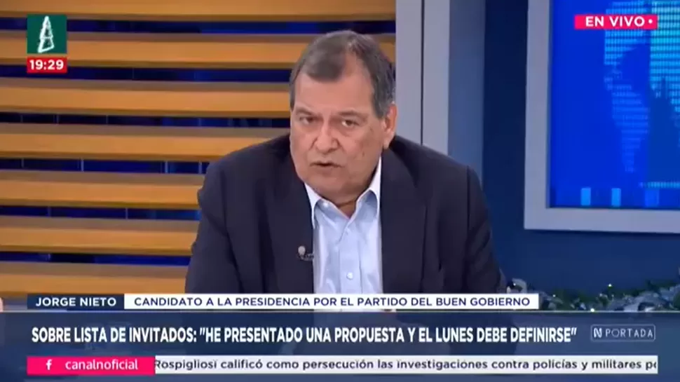 N PortadaJorge Nieto: Tenemos que recuperar el Estado para el interés públicoN Portada / Canal NN Portada, de lunes a viernes a partir de las 07:00 p.m. por Canal N TagsN PortadaRelacionadasNatale Amprimo: El Congreso debió limpiar íntegramente el Ministerio PúblicoDarwin Izaguirre: María Corina Machado ha dicho que regresará a VenezuelaDiethell Columbus: Grandes reformas han salido de este CongresoLuis Lamas Puccio: Delia Espinoza está haciendo de una u otra manera políticaErick García: Petroperú necesita una reestructuración profundaGilbert Violeta: La candidatura de Molinelli salió por unanimidad