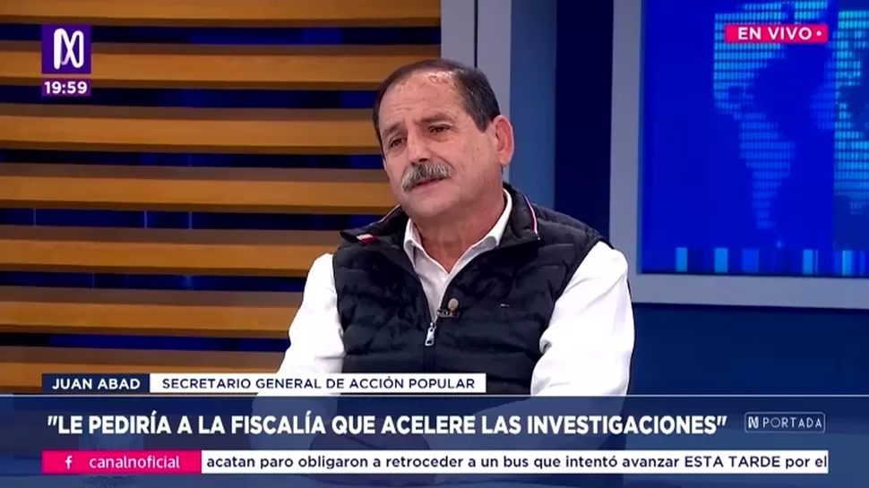 N PortadaJuan Abad: Tres congresistas renunciaron y dos fueron expulsados de Acción PopularN Portada / Canal NN Portada, de lunes a viernes a partir de las 07:00 p.m. por Canal N TagsN PortadaRelacionadasLuis Valdez: APP siempre apoyará la gobernabilidadEnrique Ghersi: La mayoría en el TC se ha pronunciado a favor de Keiko FujimoriMarisol Pérez Tello: Yo no integraría el gabinete de José JeríHernán Chaparro: El país vive un clima enrarecido y de cansancio socialDomingo García Belaunde: Los ministros se quedan para entregar el cargoFlavio Cruz: Comprendo la reacción de la población en Puno contra Butters