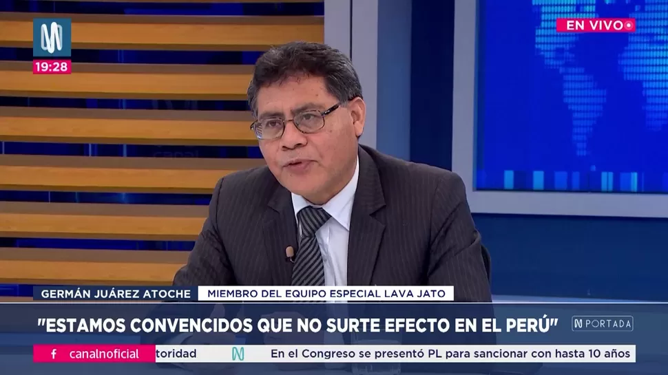 N PortadaJuárez Atoche: Quieren traerse abajo el caso porque vincula a Lula da SilvaGermán Juárez AtocheN Portada, de lunes a viernes a partir de las 07:00 p.m. por Canal N TagsN PortadaRelacionadasWilber Medina: Si se activa la cláusula anticorrupción todos los arbitrajes se caen Fernando de la Torre: En los concursos de Petroperú no se revela el monto referencial y eso afecta la transparencia del procesoOmar Awapara: La gira nacional de Jerí lo proyecta políticamente más allá de su mandatoCarlos Caro: la JNJ debe cumplir con reponer a Delia EspinozaJosé Cueto: Hay que ser un poco más radicales con el tema del estado de emergenciaElmer Cuba: El populismo anida transversalmente en las bancadas del Congreso
