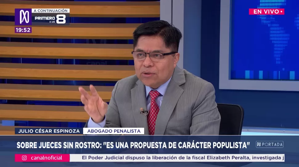 N PortadaJulio César Espinoza: La propuesta de jueces sin rostro es populistaN Portada / Canal NN Portada, de lunes a viernes a partir de las 07:00 p.m. por Canal N TagsN PortadaRelacionadasCarlos Tubino: Voy a ser candidato al senadoJuan de la Puente: Carlos Álvarez es el auténtico outsiderRoque Benavides: No deja de sorprenderme la proactividad de JeríNatale Amprimo: La sentencia del TC por el caso Cócteles se caía de maduraAsesores a los pies de la congresista VásquezDelia Espinoza: La JNJ busca destruirme