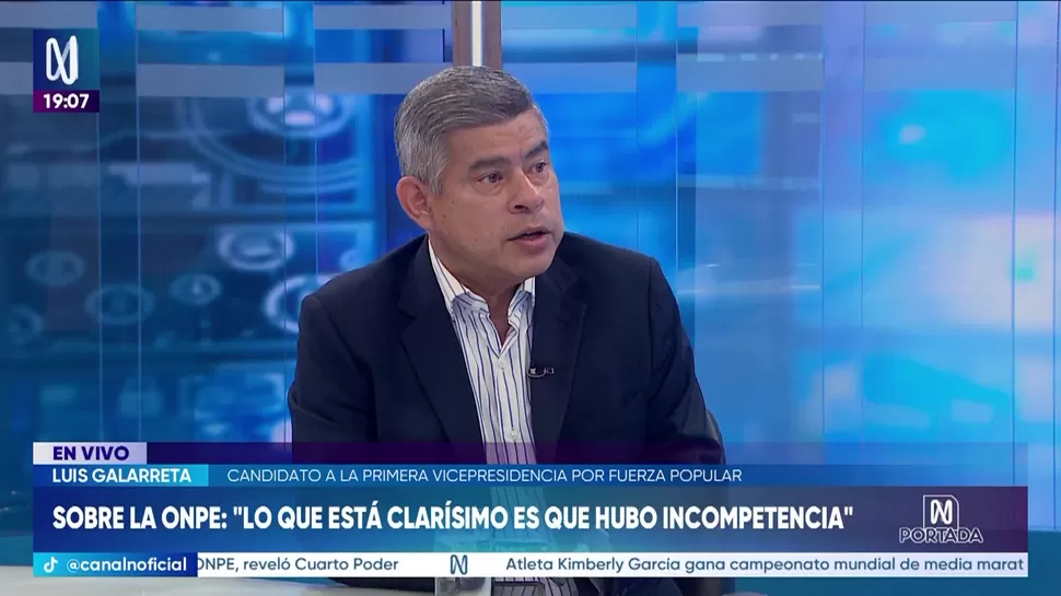 N PortadaLuis Galarreta: Está clarísimo que hubo incompetencia en la ONPEN Portada / Canal NN Portada, de lunes a viernes a partir de las 07:00 p.m. por Canal N TagsN PortadaRelacionadasJosé Ugaz: No hay elemento alguno para sostener que se ha manipulado el resultadoJosé Cueto: Creo que Corvetto hace tiempo debió dar un paso al costadoCandidatos cerraron sus campañas electoralesCésar Nakazaki: Juicio de Pedro Castillo dejó de ser jurídicoEnzo Elguera: Hay muchas personas consultando cuánto les cuesta la multa por no votarCarlos Meléndez: Alberto Fujimori es una imagen que todavía juega en política