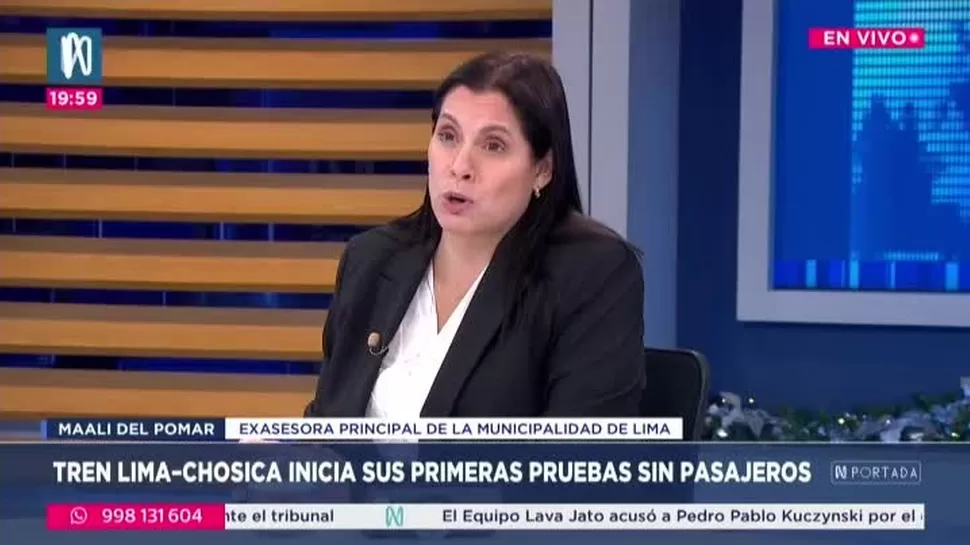 N PortadaMaali del Pomar: El tren Lima–Chosica podría empezar a operar en julio de 2026N Portada / Canal NN Portada, de lunes a viernes a partir de las 07:00 p.m. por Canal N TagsN PortadaRelacionadasJorge Nieto: Tenemos que recuperar el Estado para el interés públicoNatale Amprimo: El Congreso debió limpiar íntegramente el Ministerio PúblicoDarwin Izaguirre: María Corina Machado ha dicho que regresará a VenezuelaDiethell Columbus: Grandes reformas han salido de este CongresoLuis Lamas Puccio: Delia Espinoza está haciendo de una u otra manera políticaErick García: Petroperú necesita una reestructuración profunda