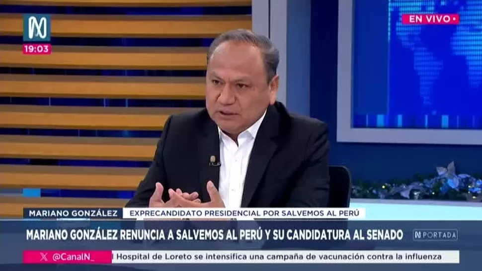 N PortadaMariano González: Antauro Humala ha conversado con Salvemos al Perú para ir al SenadoN Portada / Canal NN Portada, de lunes a viernes a partir de las 07:00 p.m. por Canal N TagsN PortadaRelacionadasIlich López: Fue un error que Julio Chávez postuleHumberto Abanto: Tengo comunicación con Ciro Castillo pero no sé dónde estáAlfredo Barnechea: Quiero pedir disculpas a los miembros del JNEJorge González Izquierdo: El precio del dólar ha bajado 10%, muy fuerteAfredo Azurín: A la Policía se le ha quitado la autoridadCarlo Magno Salcedo: Víctor Polay es un terrorista
