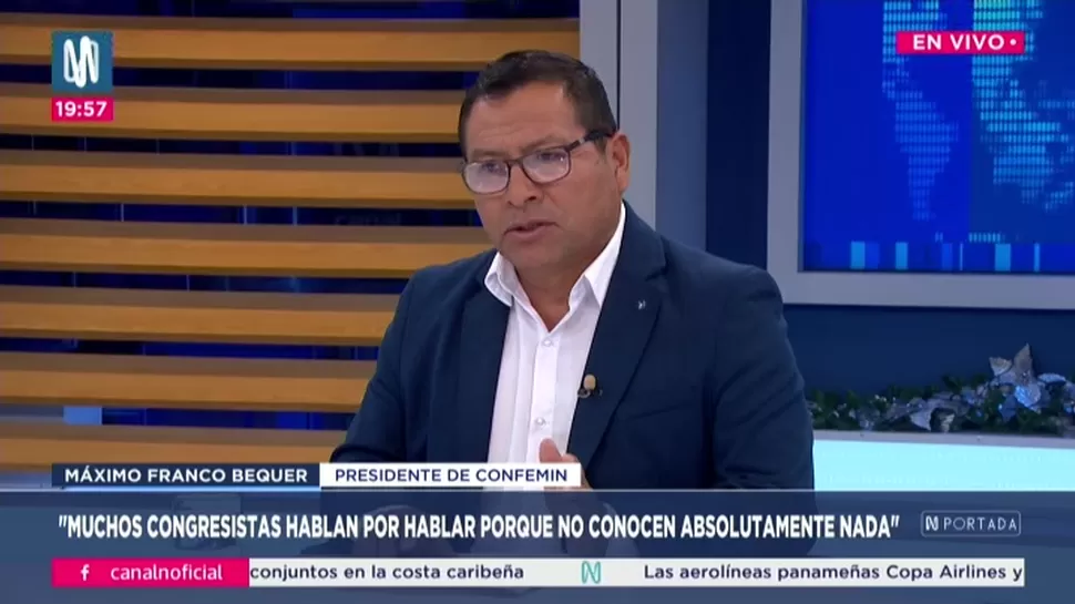 N PortadaMáximo Franco Bequer: Muchos congresistas hablan por hablar porque no conocen nadaN Portada / Canal NN Portada, de lunes a viernes a partir de las 07:00 p.m. por Canal N TagsN PortadaRelacionadasÓscar Urviola: Invadir las competencias de un poder del Estado es una violación constitucionalJuan de la Puente: El APRA grita renovaciónIván Arenas: La ampliación del REINFO debería ser por un añoOmar Quezada: Las elecciones internas han servido para reactivar el APRACluber Aliaga: Hay suficientes elementos para resolver pronto el caso de Rafael Belaunde Ricardo Burga: Julio Chávez debe tener entre 50 y 58 delegados