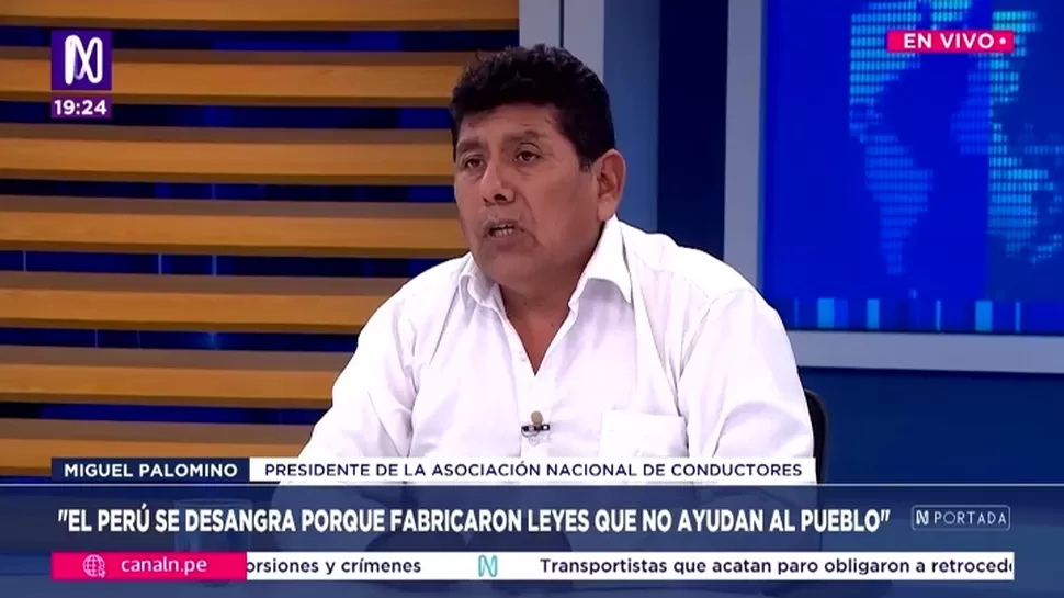 N PortadaMiguel Palomino: Los conductores estamos asustados, no podemos trabajarN Portada / Canal NN Portada, de lunes a viernes a partir de las 07:00 p.m. por Canal N TagsN PortadaRelacionadasJuan Rosales: El Congreso es visto como el sector o institución con más poderSebastián Ortiz: El nuevo ministro de Justicia registra 14 investigaciones penales, 4 siguen vigentesLuis Jaime Castillo: El ministro de Cultura no da la caraCarlos Bruce: Quedará evidencia que la congresista Acuña está mintiendoTito Alegría: La crisis en Machu Picchu requiere una solución integralJulio Midolo: Creo que hay insumos sufientes para investigar a Betssy Chávez