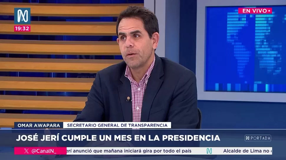 N PortadaOmar Awapara: La gira nacional de Jerí lo proyecta políticamente más allá de su mandatoOmar AwaparaN Portada, de lunes a viernes a partir de las 07:00 p.m. por Canal N TagsN PortadaRelacionadasFernando de la Torre: En los concursos de Petroperú no se revela el monto referencial y eso afecta la transparencia del procesoCarlos Caro: la JNJ debe cumplir con reponer a Delia EspinozaJosé Cueto: Hay que ser un poco más radicales con el tema del estado de emergenciaElmer Cuba: El populismo anida transversalmente en las bancadas del CongresoAníbal Quiroga: “Hay que sentar los pilares conceptuales de la reforma de justicia”Álex Guerrero: “Gálvez adelantó opinión y sabemos que no está de acuerdo con los equipos especiales”